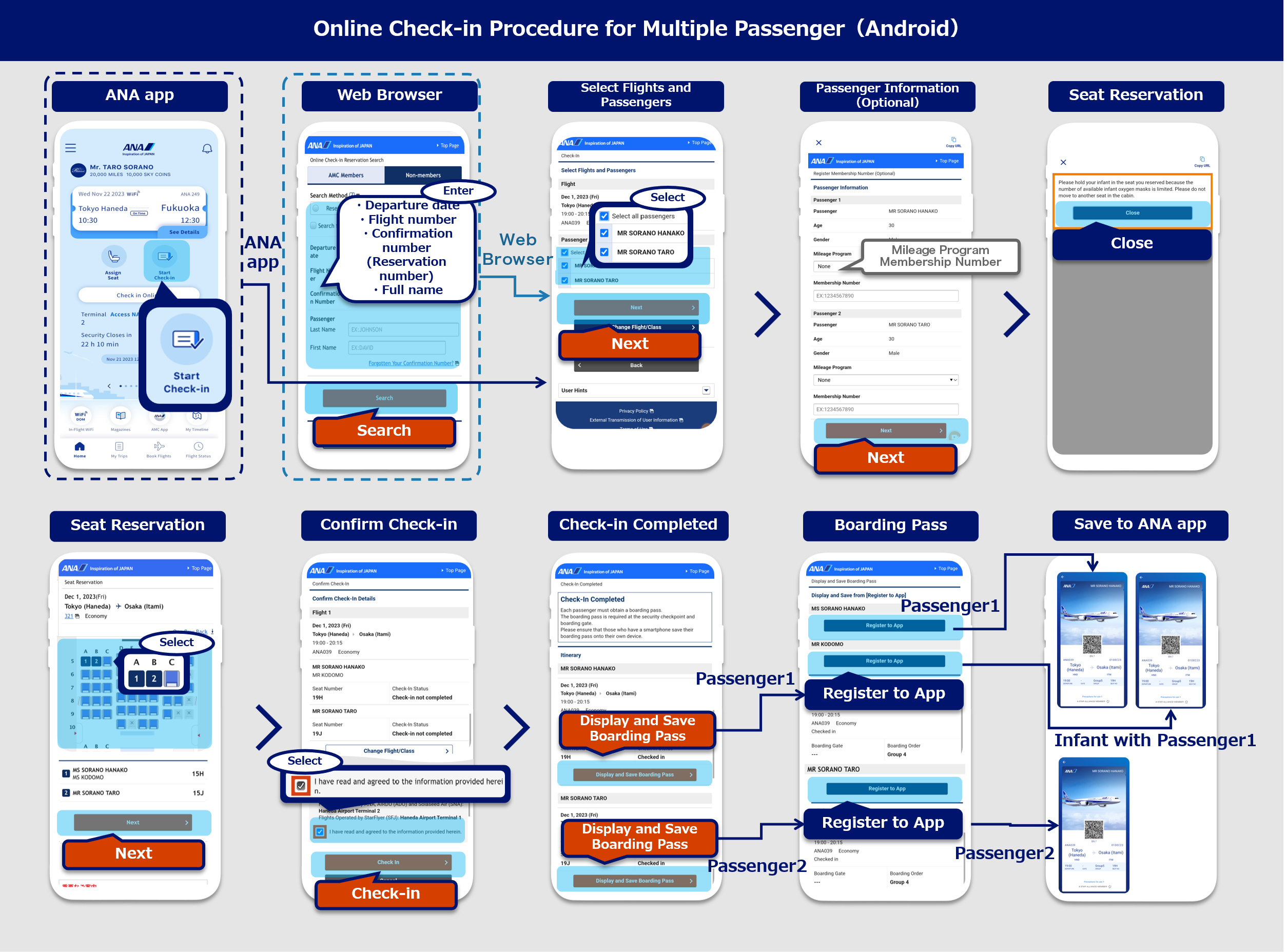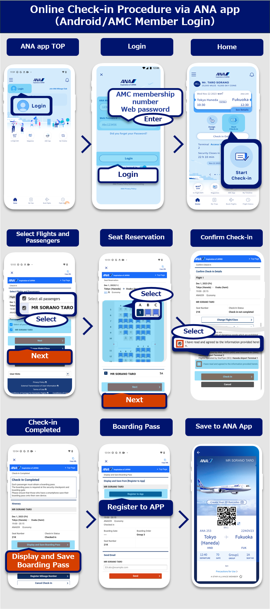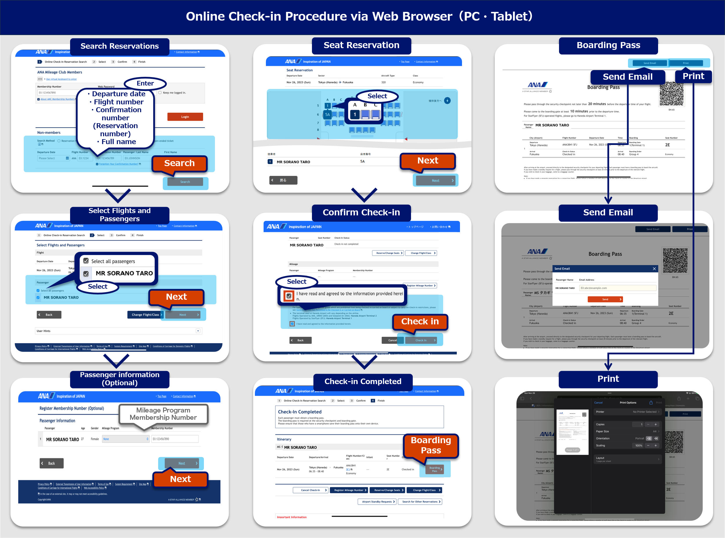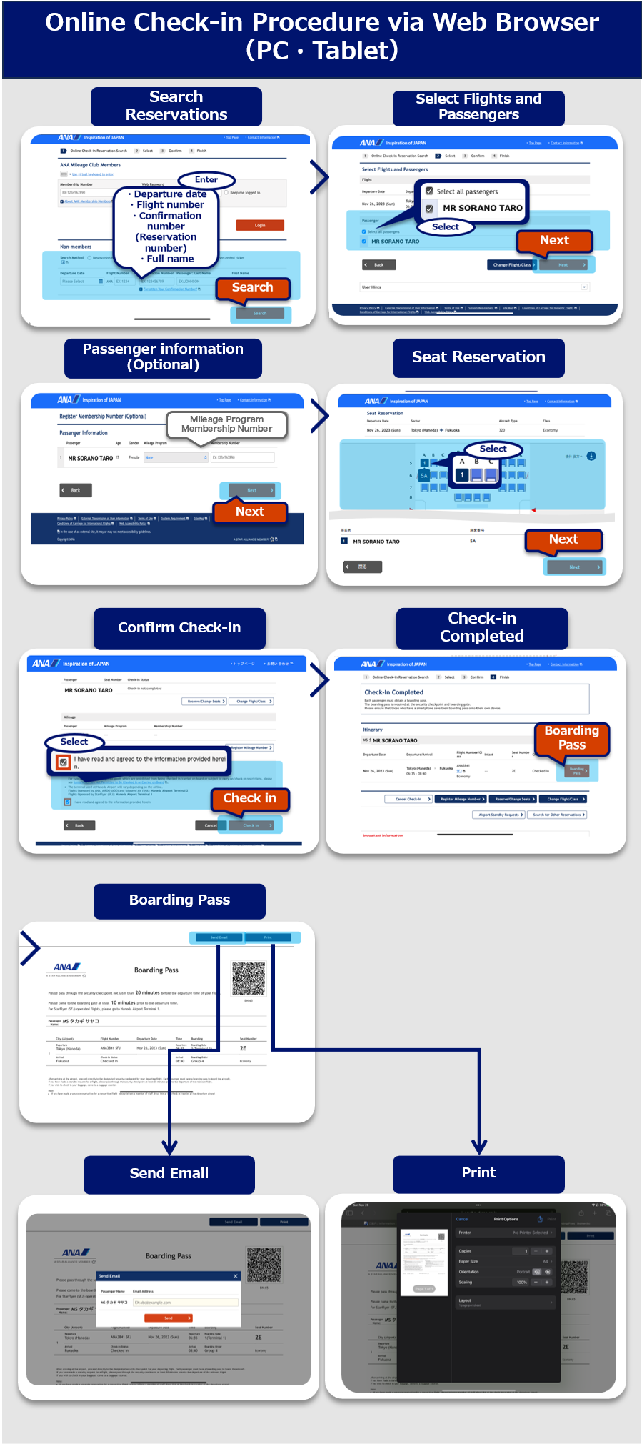 Notifications regarding online check-in will be sent via email / ANA app push notifications.