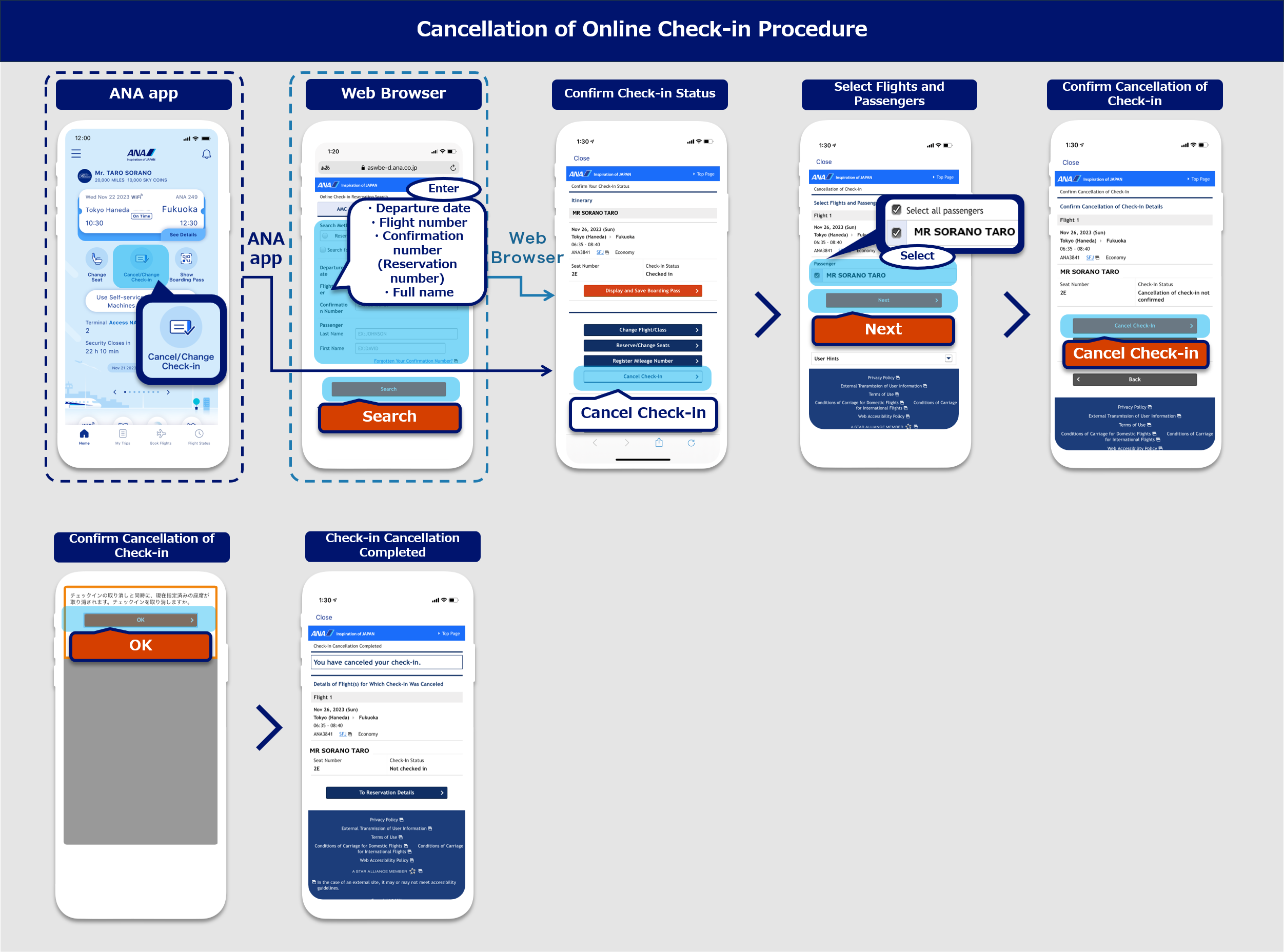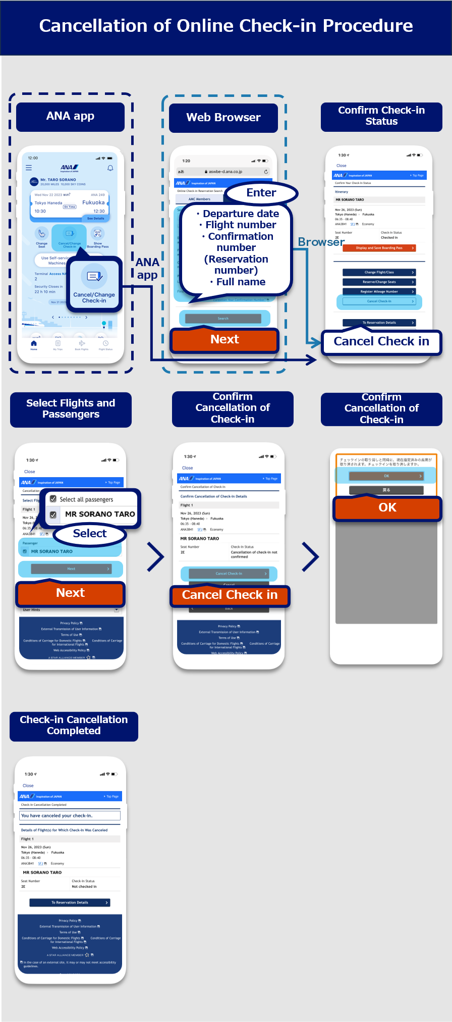 Cancellation is also possible after completing online check-in. Please see “Cancellation of online check-in” below for instructions.