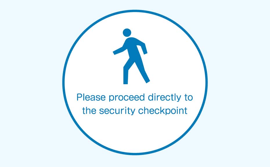 Please complete the necessary procedures at an airport counter or self-service check-in machine, and then pass through security at least 20 minutes prior to departure.