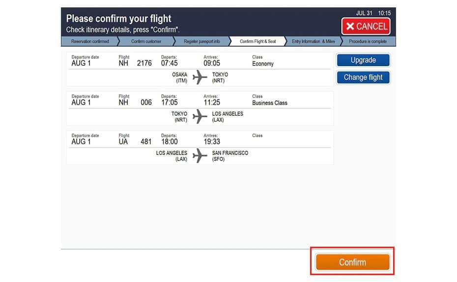 Please confirm the itinerary, and then press Confirm.