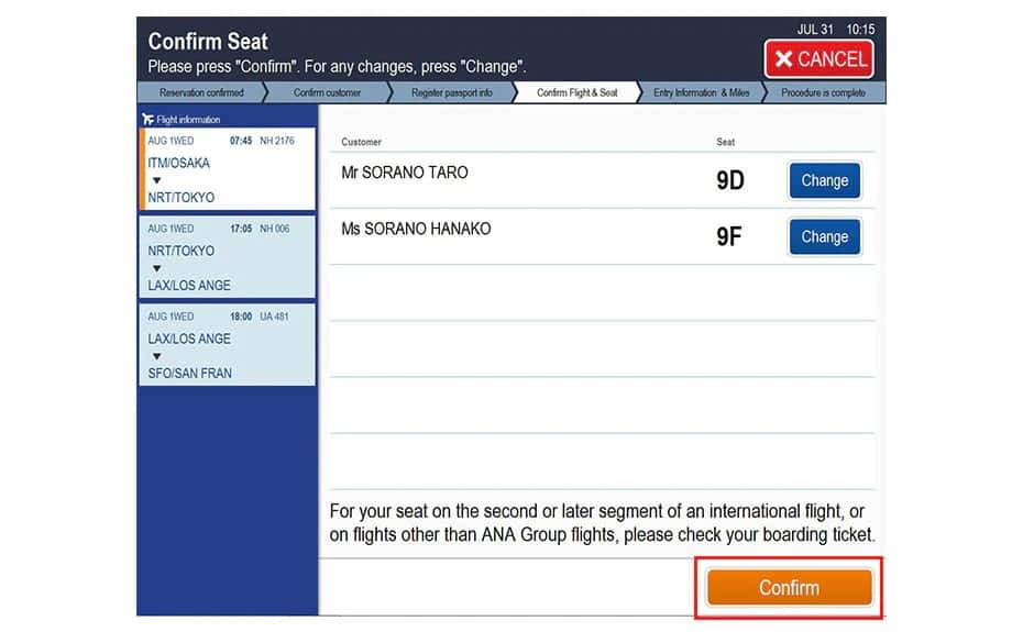 Please note that you cannot select seats for the second international sector onward, as well as flights not operated by the ANA Group. Please confirm the seat on your boarding pass.