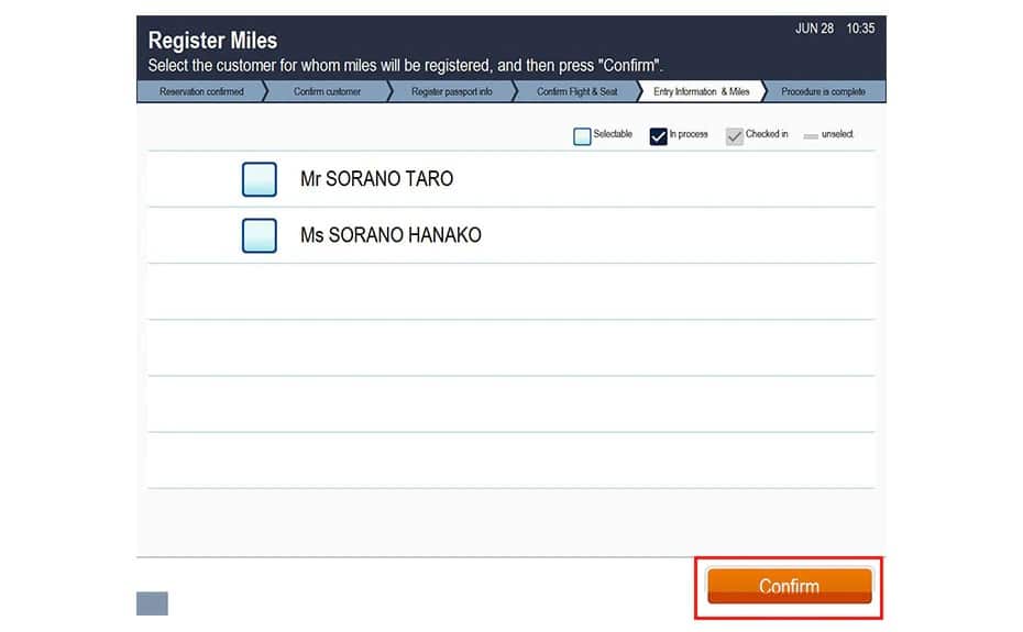 Please confirm your registered travel information, and then press Confirm.