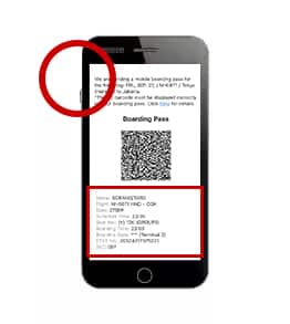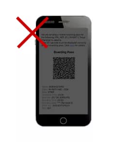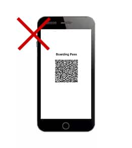 Upon presenting the mobile boarding pass, the barcode may be difficult to scan if the backlight is turned off or the screen is covered by a protective film.