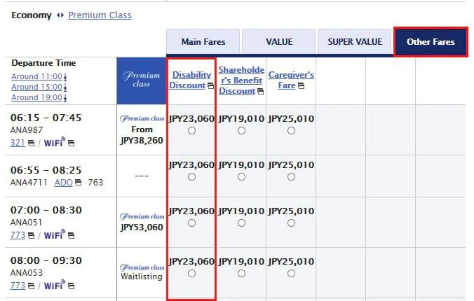 A special discount is available for customers with Grade 1 and 2 disabilities for Japan domestic flights.