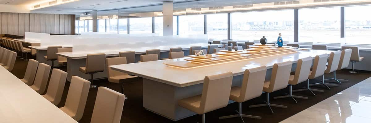 Under the supervision of internationally renowned Japanese architect Kengo Kuma, this lounge was designed based on the concept of "Ichigo ichie" (treasure every encounter as if it were once in a lifetime). The "Yamato Wall" is constructed out of the Japanese kalopanax tree, bringing brightness and light to the lounge.