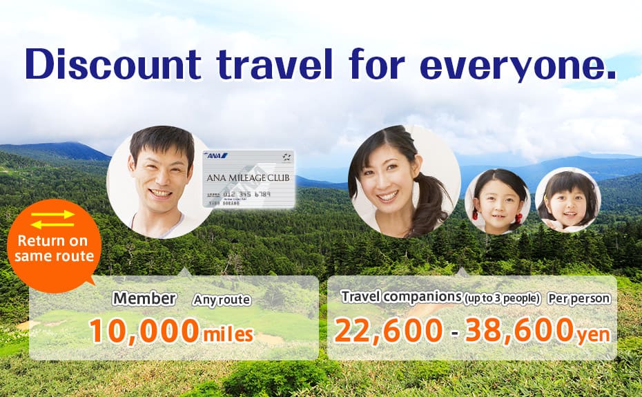 This is a special fare available when 2–4 people, including an ANA Mileage Club Member, travel together as a group on the same outbound and inbound route. Vouchers can also be used by family members and friends.