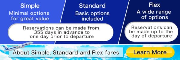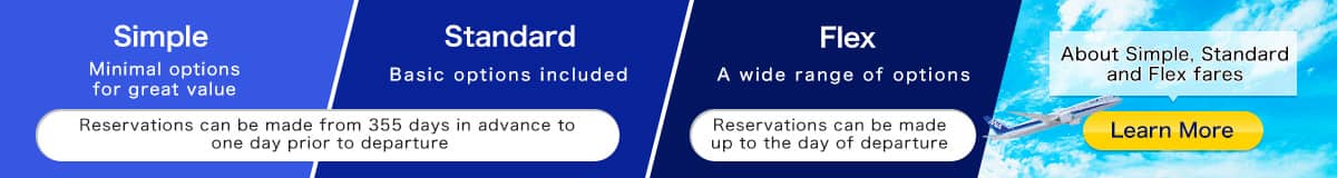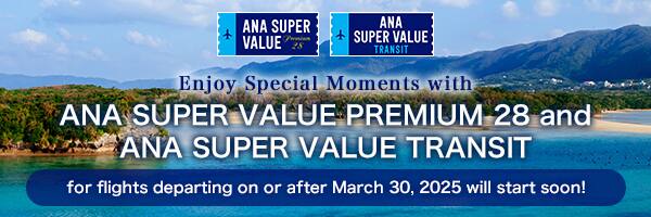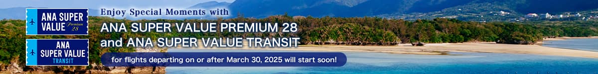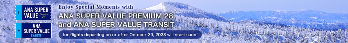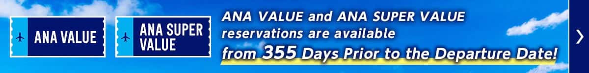 Depending on the route, the individual flight, and the time of year, "ANA SUPER VALUE" may not be available or the fare amount may differ. A limited number of seats are available for use on each flight.