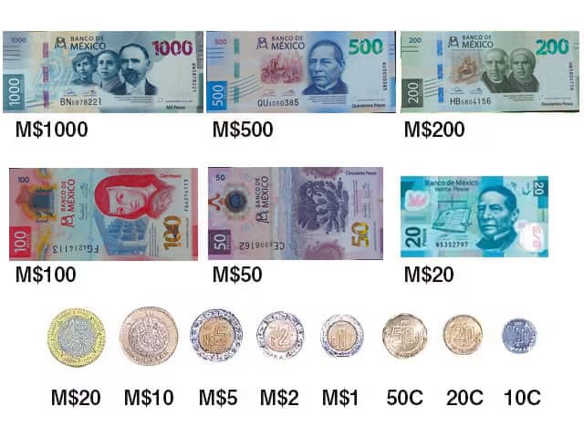 The unit of currency is the Peso. The currency symbol is a $ sign, but it is denoted here as M$ to distinguish it from U.S. dollars. M$1 is approx 7.90 yen (as of July 22th, 2025). The Peso is divided into Centavos. M$1 is 100 Centavos. The inflation rate in Mexico is about 2 to 7% a year.