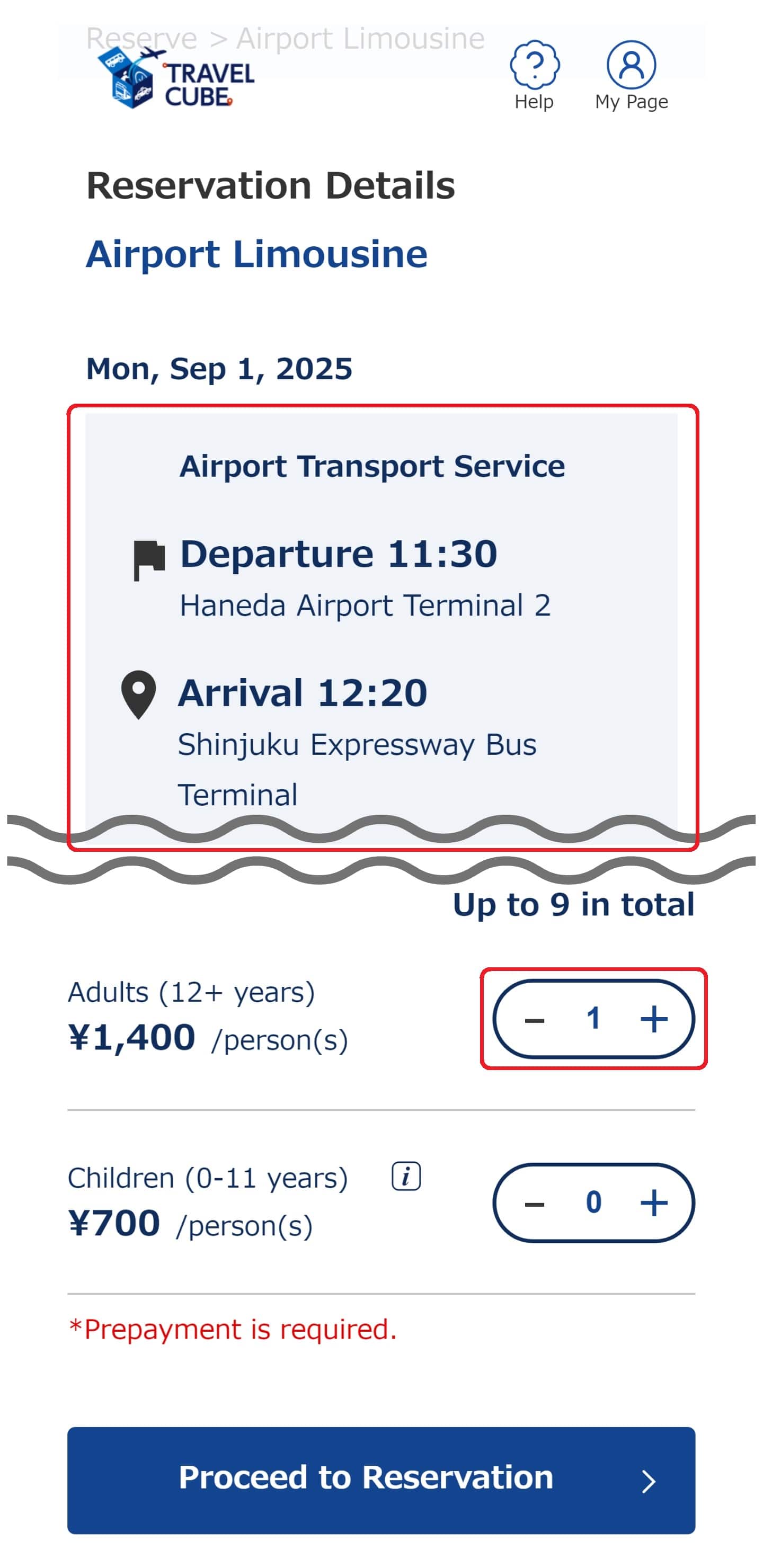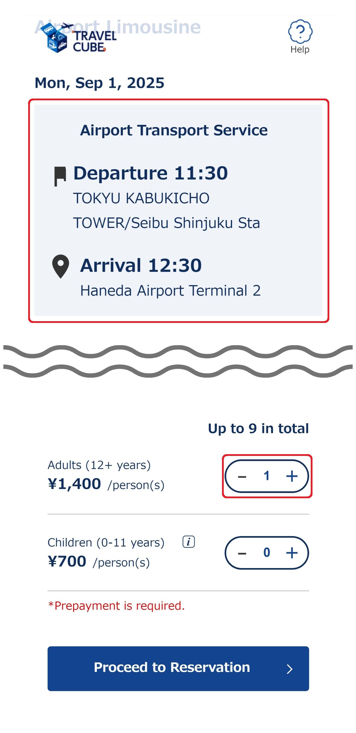 Check your reservation in the reservation/purchase completion email received or in Travel CUBE's List of Reservations.