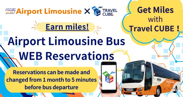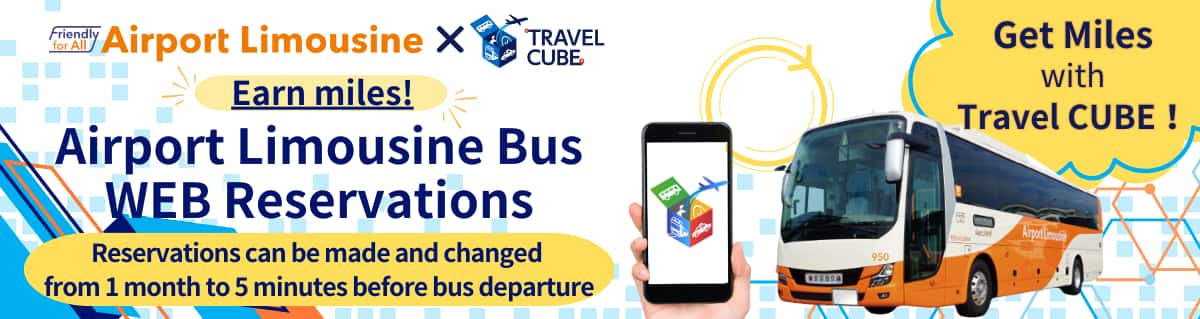 With Travel CUBE*, you can make reservations and purchase digital tickets for Airport Transport Service limousine buses, which offer the most convenient access between Haneda Airport/Narita Airport and major terminals and hotels in the Greater Tokyo Area. Earn 1 mile for every JPY 200 (including tax) paid when purchasing the tickets with Travel CUBE and using the bus service.