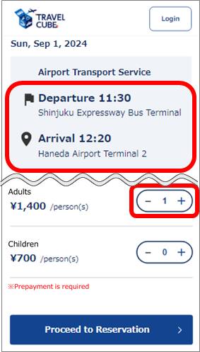 Check the boarding section and select the number of passengers, then click [Proceed to Reservation].