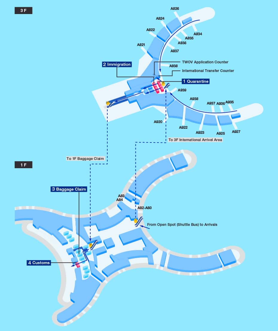 After completing arrival formalities and collecting your baggage, please proceed to the domestic transfer counter on the 1st floor.