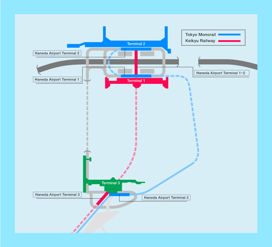 International flights are being operated at Haneda Airport terminals 2 and 3. Transfer Map