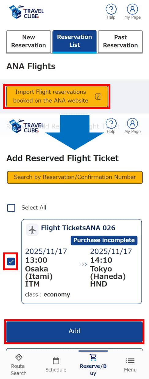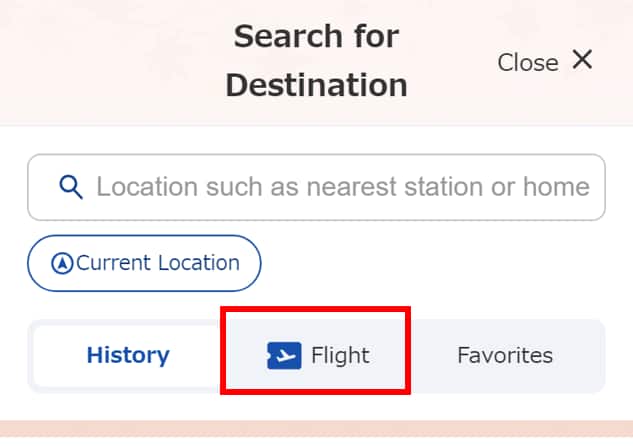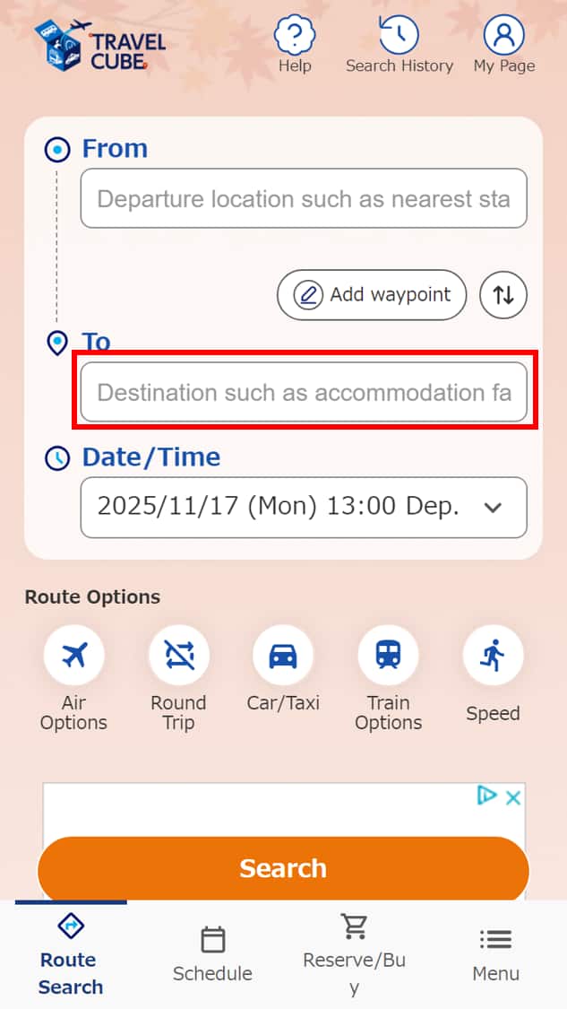 Click "From/To" or "+Midway Dest./Via" on the route search screen