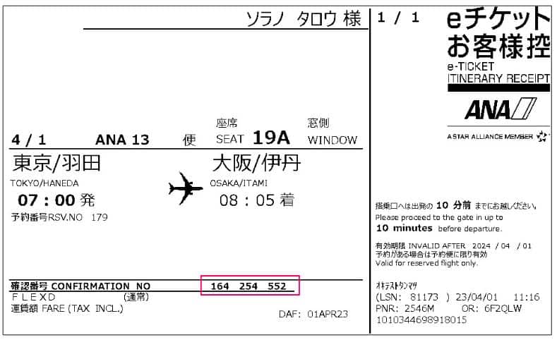 If you registered your ANA Mileage Club membership number at the time of booking, a confirmation number may not be provided depending on the payment method.