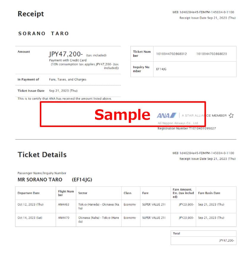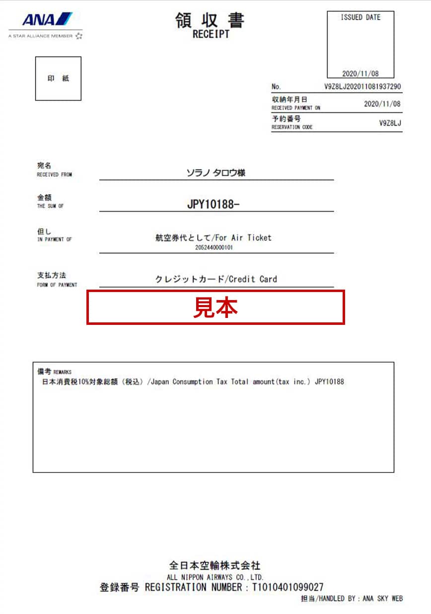 Note that if you have a receipt that does not have the ANA Registration Number listed on it, you can display a receipt that lists the registration number by using the Receipt Web Display Service.