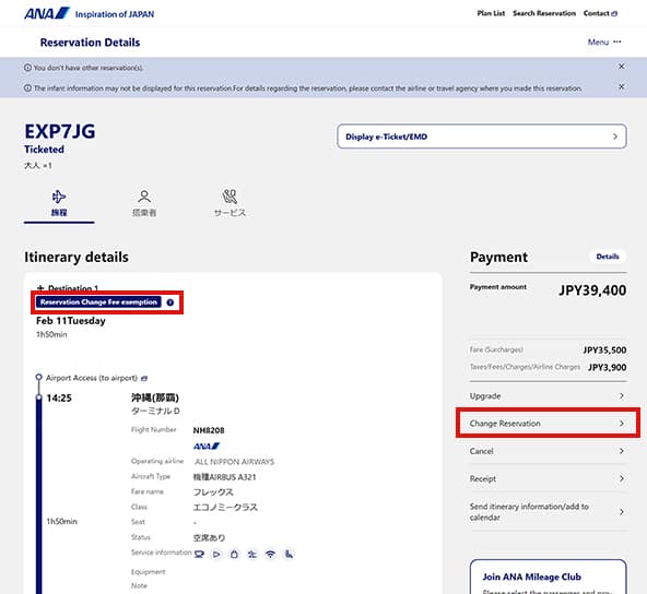 Please check your reservation details under View Reservations on the ANA website, and click Change Reservation.