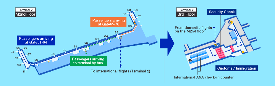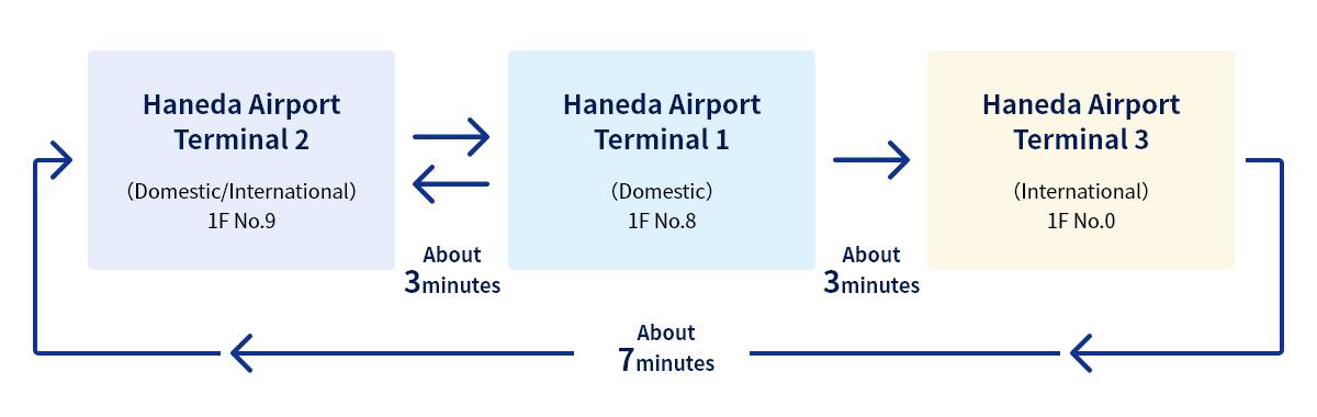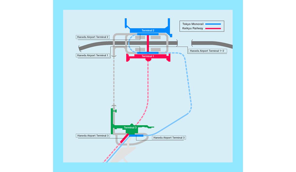 International flights are being operated at Haneda Airport terminals 2 and 3. Transfer Map