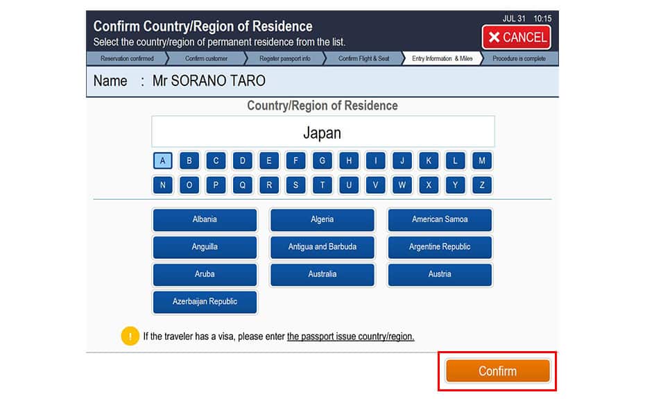 Please confirm your registered travel information, and then press Confirm.
