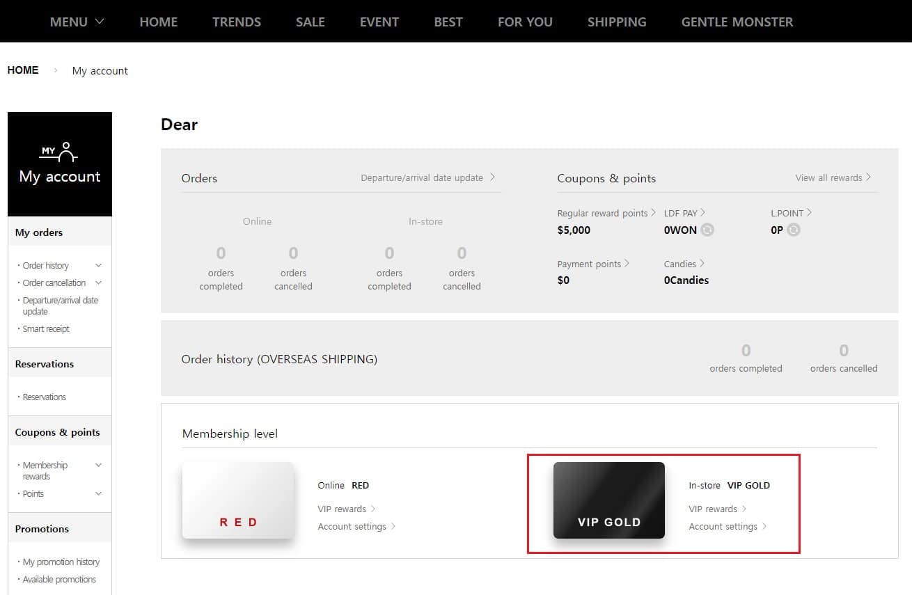 When using South Korean stores, your VIP GOLD status will also need to be issued at a South Korean store.