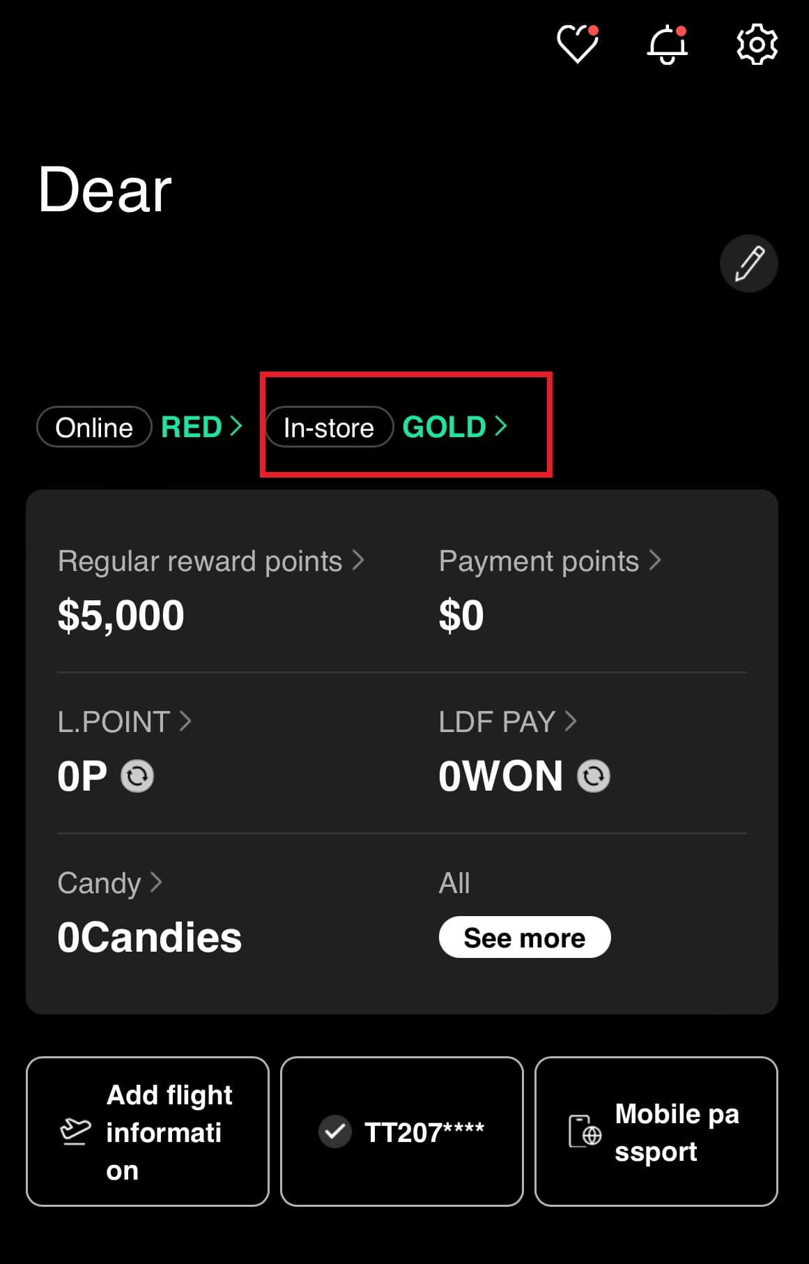 Log in to the Lotte Duty Free website or app using your registered ID and check your status on the below screens.