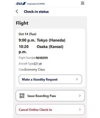 | Prerequisites | When making a standby request on the ANA Website, you must check in for your reserved flight. |