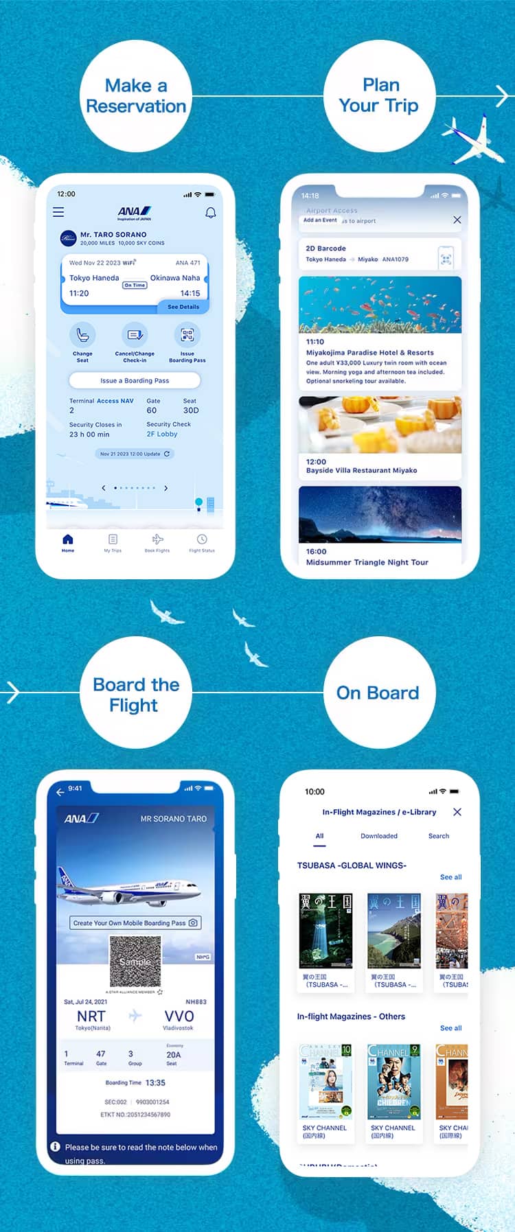 With this one app, you can complete all your procedures up to boarding including flight ticket and tour reservations, flight status checks and online check-in.