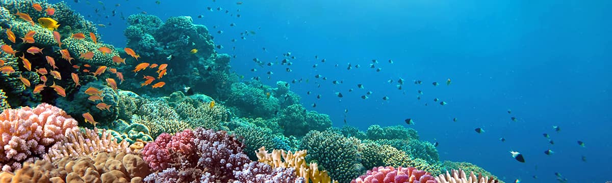 Coral bleaching due to eat damage by acanthaster, red soil runoff and rising water temperatures, grows into a serious problem.