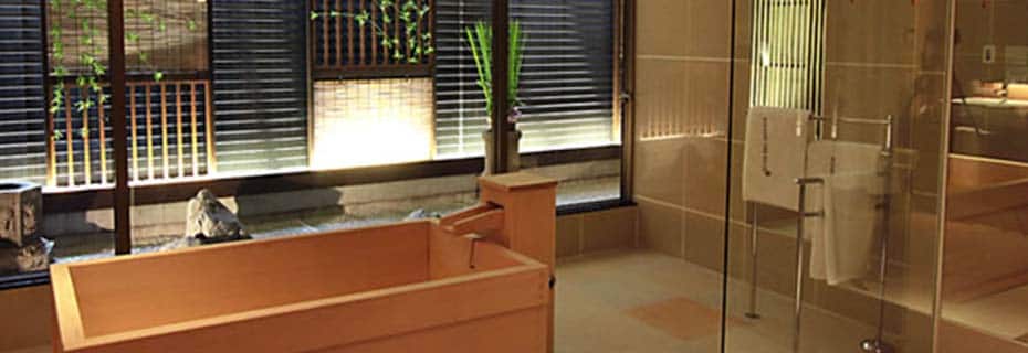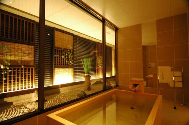 The hotel’s highest grade of room has twin beds and is decorated with Kyoto-style furnishings. It also features a Japanese umbrella pine bath in which you can immerse yourself in carbonated spring water while savoring the stunning garden view.