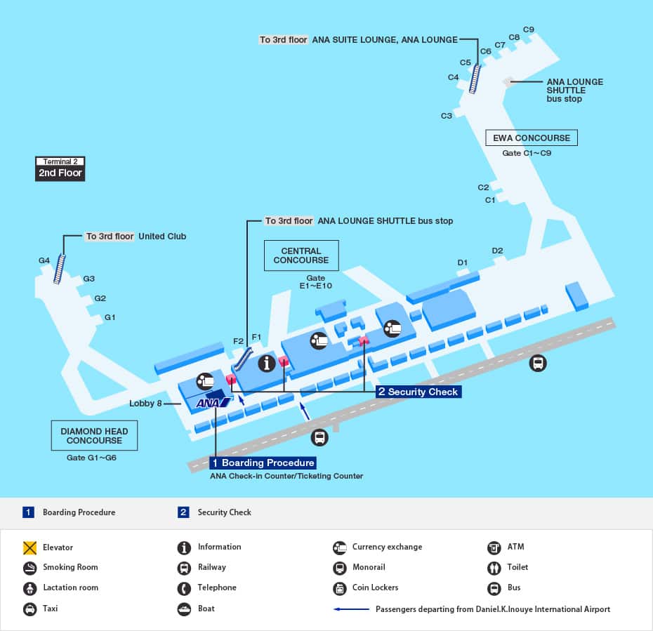 Arrival and departure terminal maps and information for Daniel K. Inouye International Airport