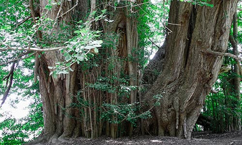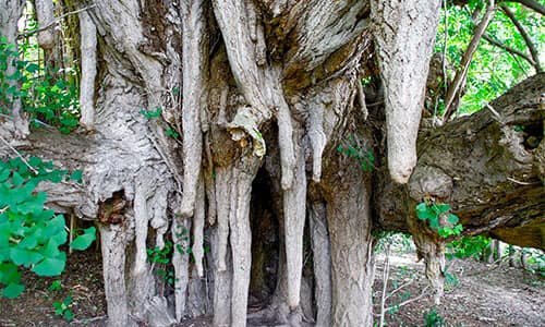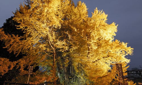 The largest ginkgo tree in Japan is located 10 minutes' walk from Kitakanegasawa Station in the town of Fukaura in Aomori Prefecture. Estimated to be around 1,000 years old, the tree is 31 meters high, which is equivalent to a 10-story building, with a trunk circumference of 22 meters. The tree is designated as a Natural Monument of Japan. It has long been worshipped as a sacred tree, while legend has it that it will improve lactation if you touch the drooping aerial roots that resemble breasts in shape.
