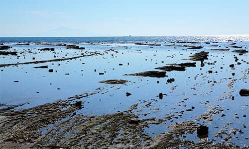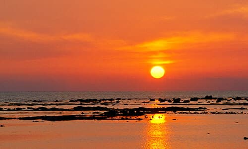 Unosaki beach is located about 10 minutes' drive from the Godzilla Rock. When the tide goes out, you can walk on the shore as the water becomes shallow for about 200 meters from the coastline. It offers a natural playground ideal for families with small children to explore the beach and find seashells with peace of mind. The beach is also famous for its stunning sunset view.