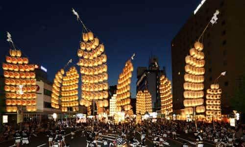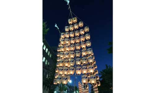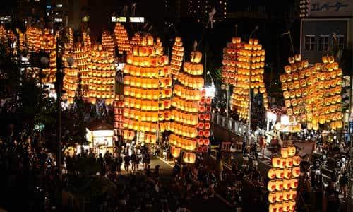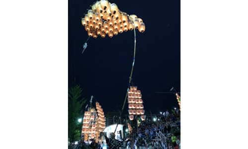 A summer tradition to pray for a bountiful harvest, the Kanto Festival has been held since about 270 years ago and is one of the three major festivals in the Tohoku region. Performers called Sashite parade the streets while forcefully holding up Kanto poles, which are long bamboo poles with 46 hanging lanterns and weighing 50 kilograms altogether. Around 260 Kanto poles are held up by the Sashites by their palms, foreheads, shoulders and lower backs with amazing skills. The stunning festival is designated as a national important intangible cultural property.