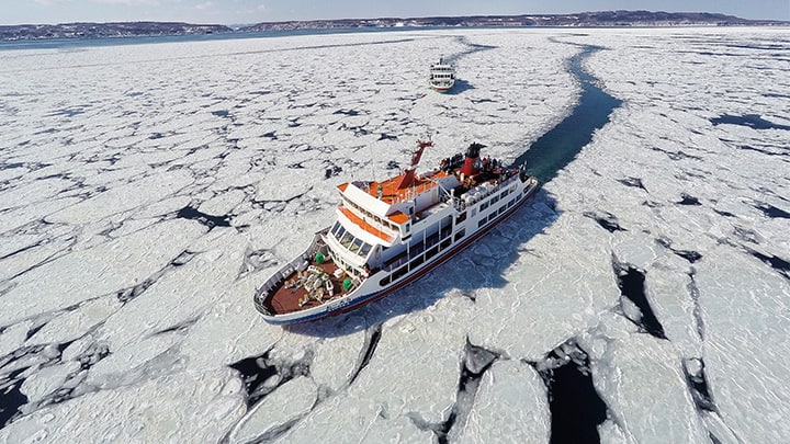 The sightseeing icebreaker makes its way through floating ice across the frozen Sea of Okhotsk which impresses as a vast piece of white land. Feel the shock when the bow hits the ice. You may spot wild animals like seals or sea eagles.