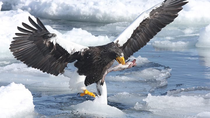 Explore animals like seals and birds which spend the winter in Shiretoko on an icebreaking boat. The white-tailed eagles and white-tailed fishes are commonly spotted when sea ice arises.