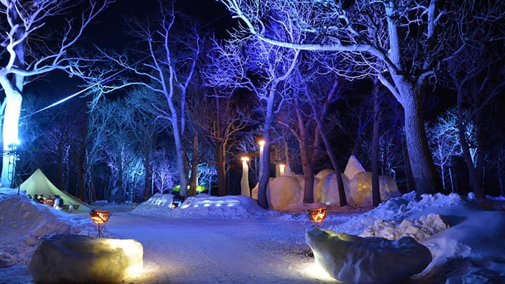 This event, held inside the campsite closed for the winter, brings special experiences unique to the winter, such as wonderful towers sculpted out of ice and wine bar on ice ground.