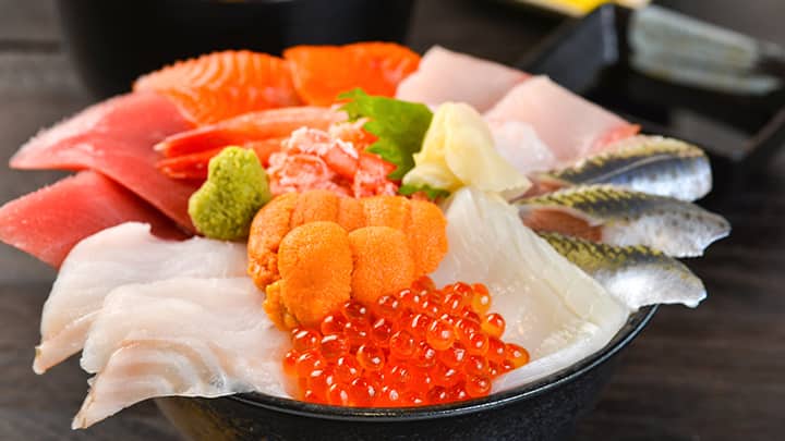 The direct-sale store of a fish meat processing company with different kinds of fish-related facilities: a special counter for sale of fish and shells, a canteen which offers signature seafood donburi dishes, a barbecue corner and an aquarium, which is the first of its kind in Kushiro.