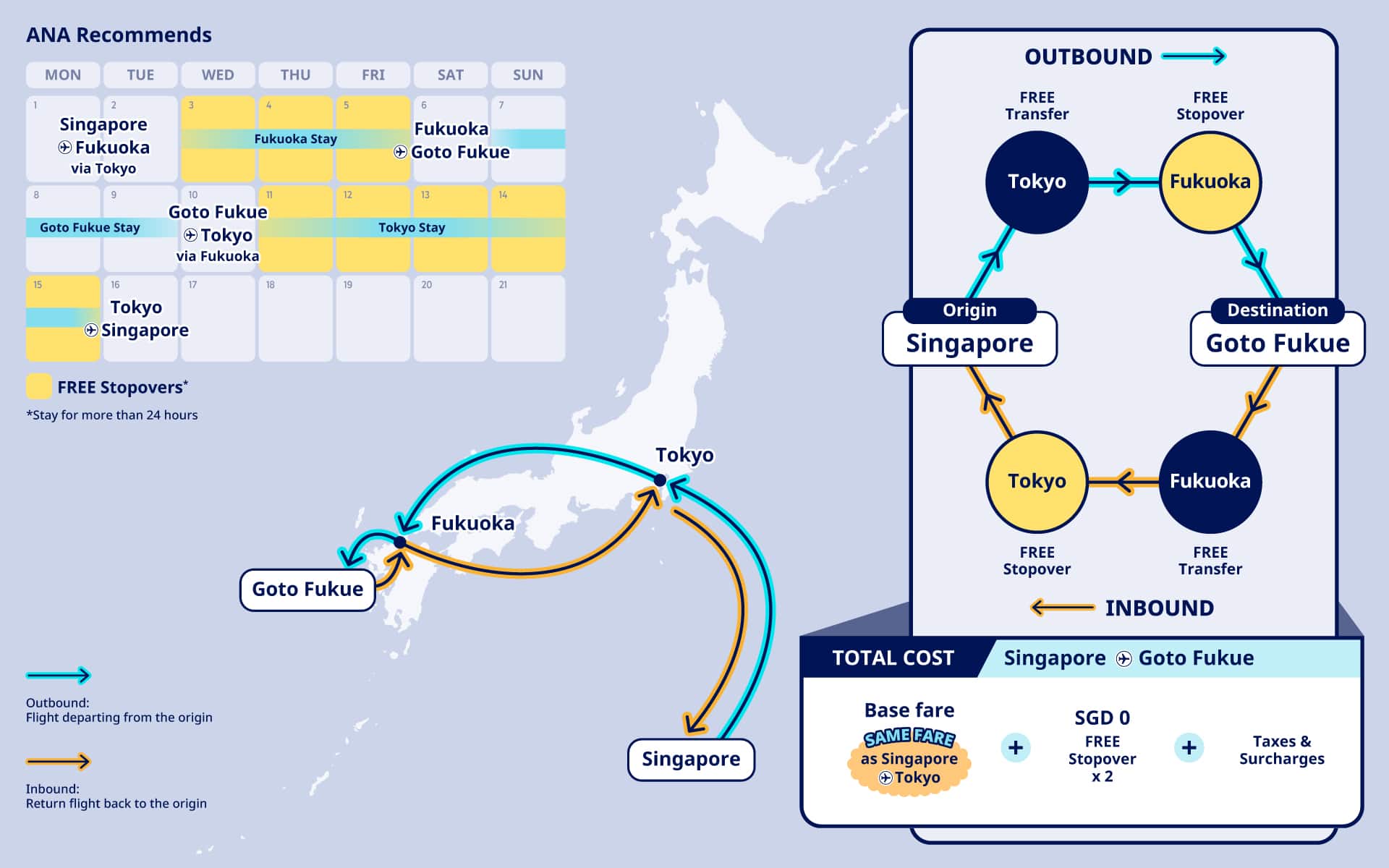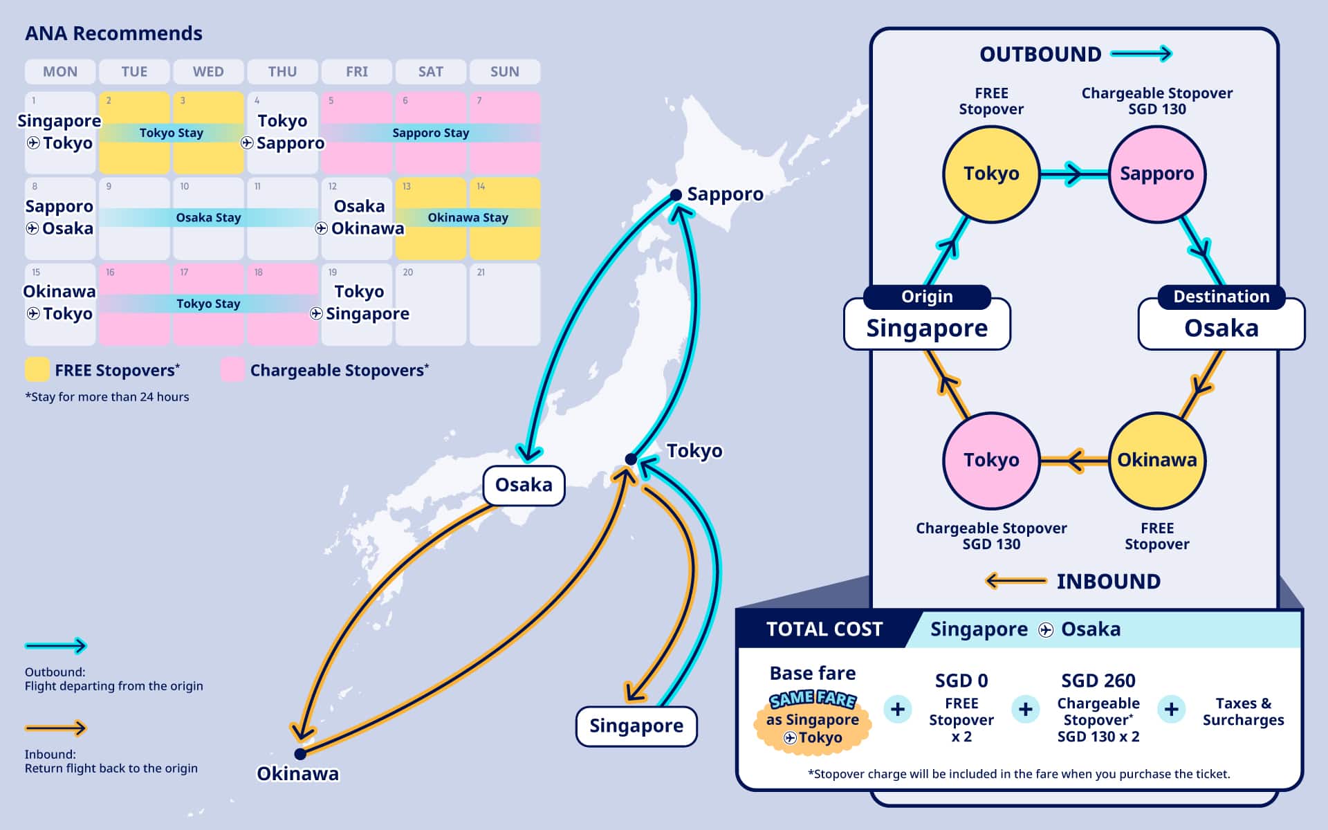Join us and explore Japan like never before-take advantage of our 2 stopovers per direction (1 FREE and 1 chargeable at SGD 130)*.