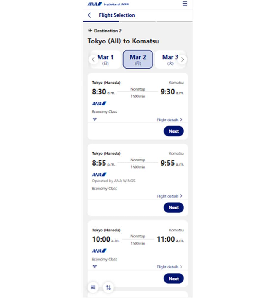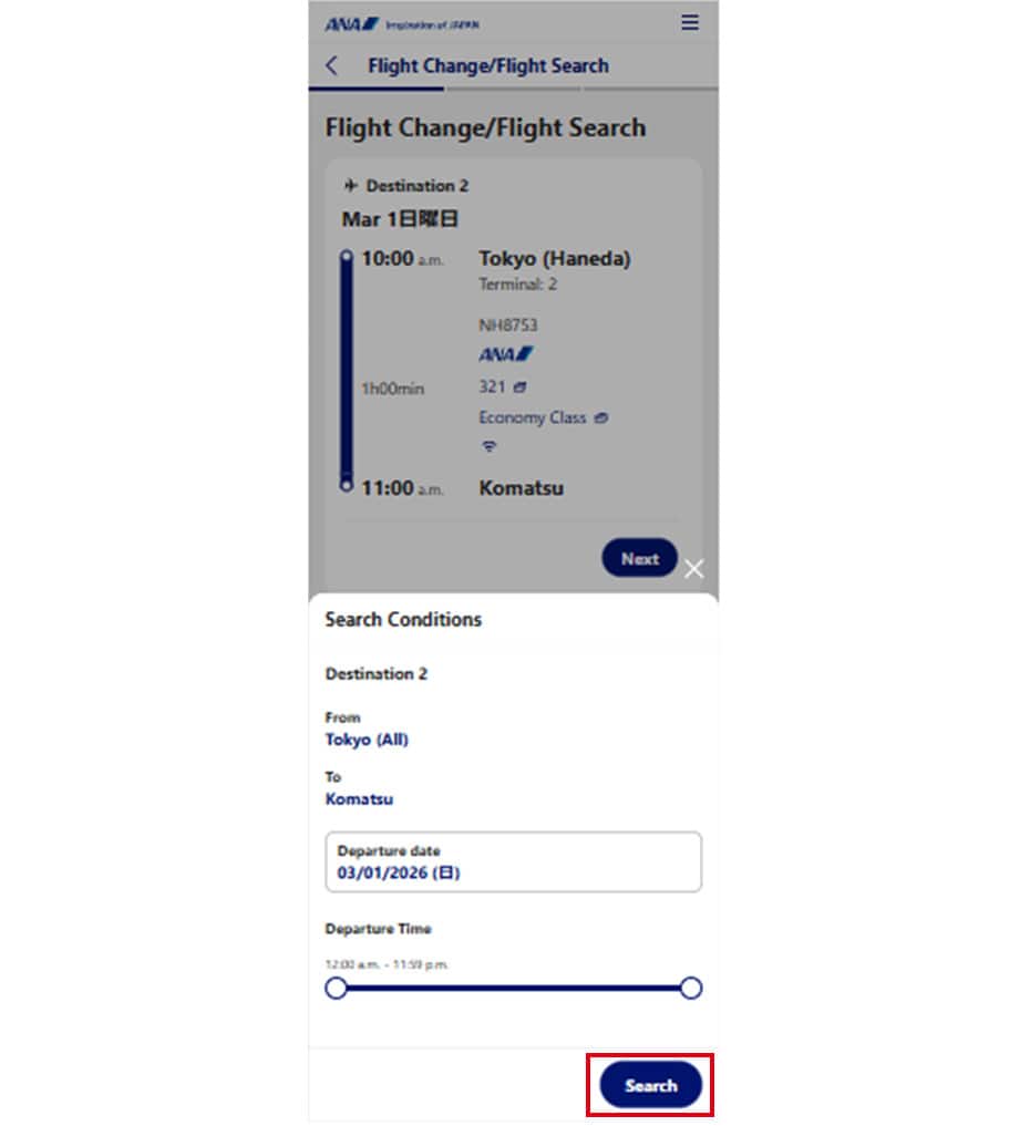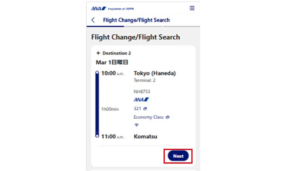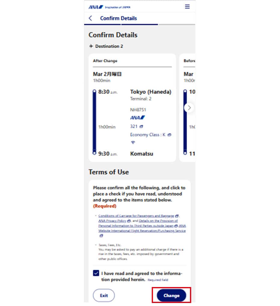 Please refer to the procedures below when changing (transferring) to an ANA flight.