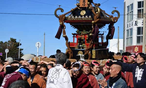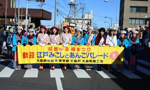 A parade of Edo mikoshi (portable shrine of the Edo period style) and anko (regional dialect for a girl or young woman) opens the Tsubaki Festival. Headed by Miss Oshima and the Miss Queen of Tsubaki, the parade is followed by a powerful Edo mikoshi to enliven the festival.
