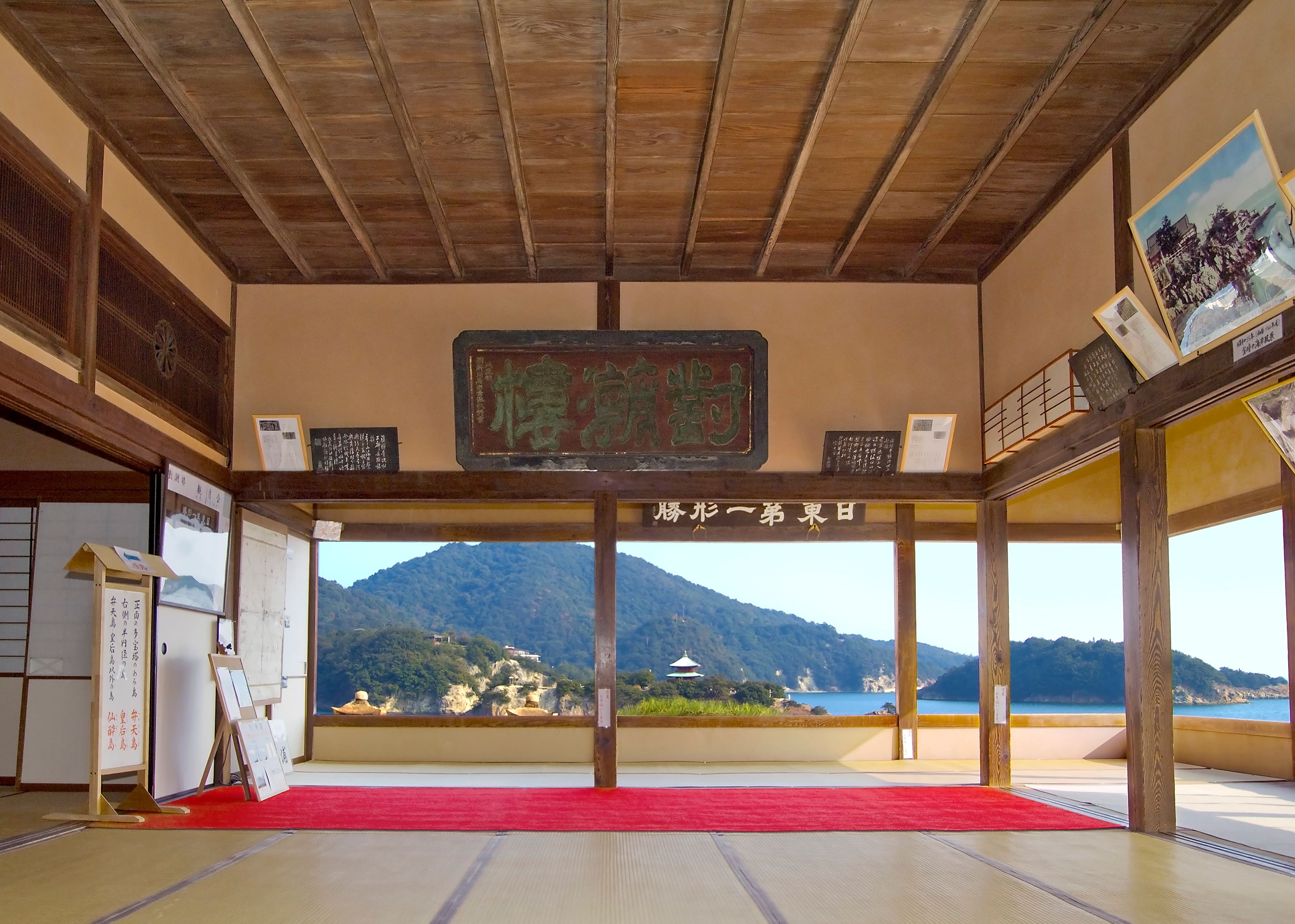 Kaiganzan Senjyuin Fukuzenji Temple is a Shingon Buddhist temple that is said to have been built around the year 950, back in the Heian period. Taichoro is a reception hall next to the main temple, said to have been built in 1690 in the Edo period. It is the perfect location to look out upon the dazzling scenery of Sensujima and other islands. Highly ranking Korean envoys stayed here, and one of them called it “the best scenery in Japan,” and named it Taichoro.