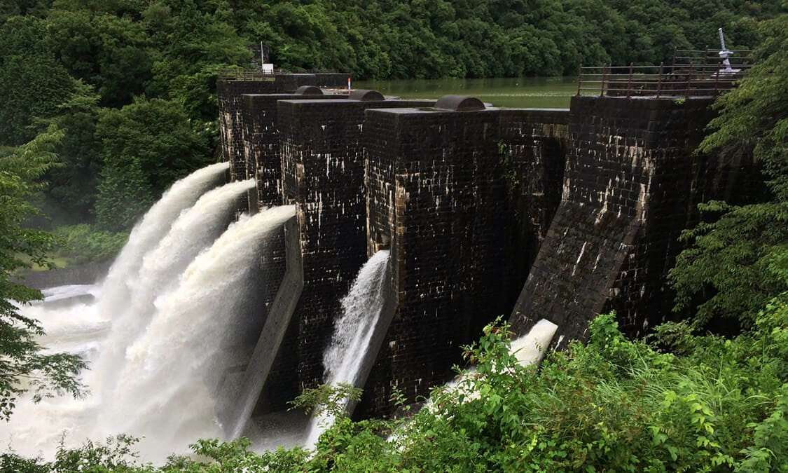 Many tourists visit the dam throughout the whole year. In particular, the summer scenes where water is discharged from the dam give it a kind of poetic seasonal charm.