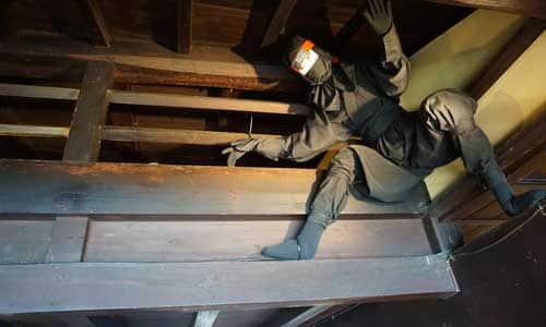The Koka School Ninja House in Koka City, Shiga Prefecture, has been preserved in its original state since its establishment. Once home to the Mochizuki ninja family, it was designed with a number of tricks and secrets to guard against intruders.