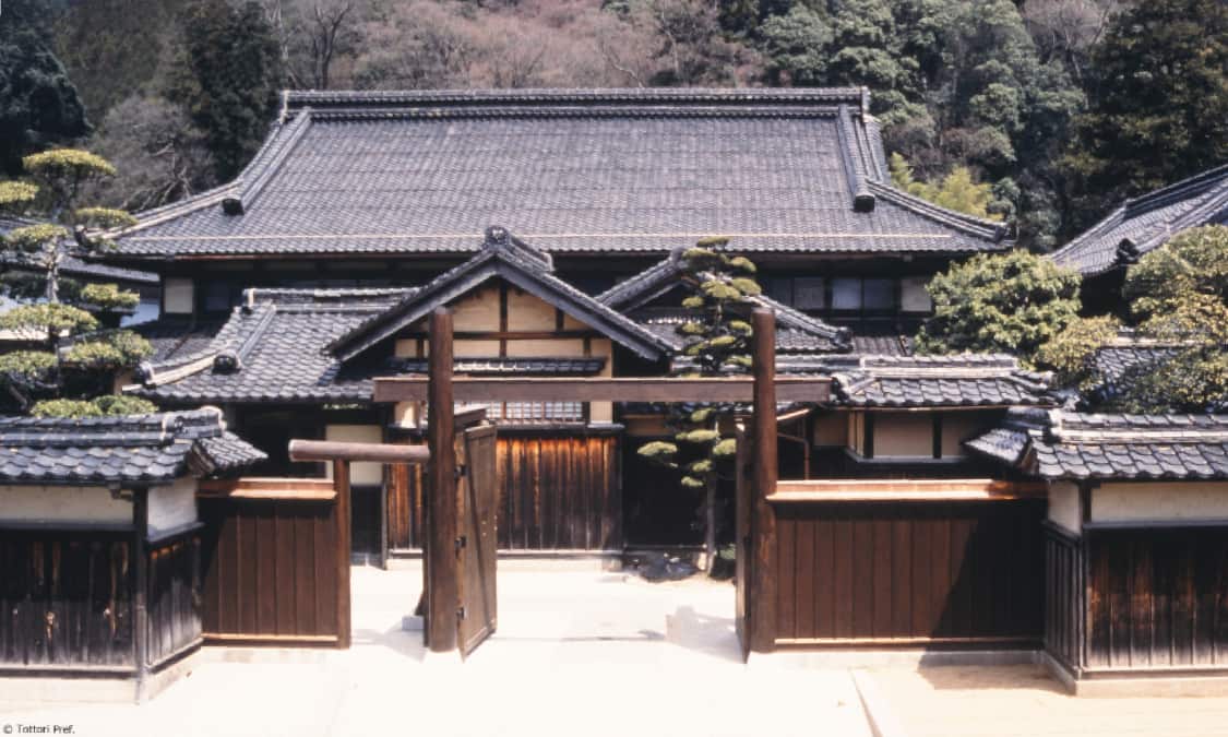 The town of Chizu prospered as the largest inn town in the Tottori Domain during the Edo period. The biggest building of the town, the Ishitani Residence, is a masterpiece of Japanese architecture and was designated as an Important Cultural Property. The house, which can be visited, features over 40 rooms, seven storehouses and Japanese gardens.