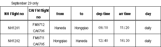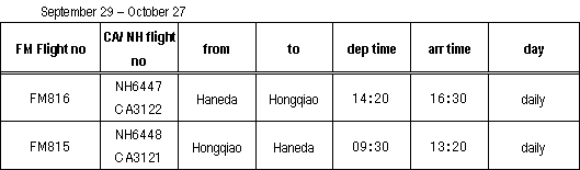 | Key NH: ANA; FM: Shanghai Airlines; CA: Air China |