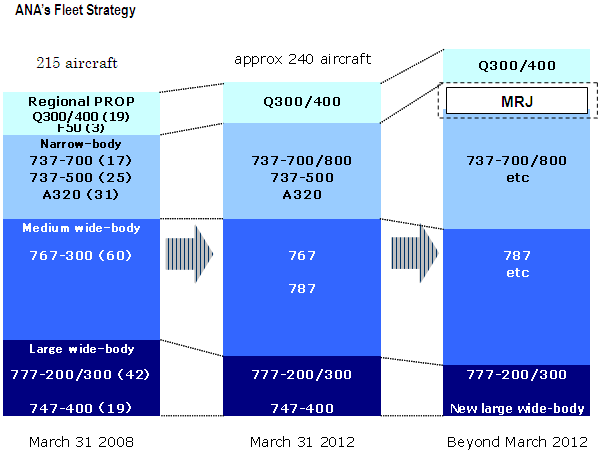 TOKYO March 27, 2008 - The ANA Board of Directors today selected the Mitsubishi Regional Jet (MRJ) as its new regional aircraft, placing a firm order for 15 and 10 options, with delivery planned from 2013. The aircraft will be powered by the Pratt & Whitney Geared Turbo Fan (GTF). Deliberations on the regional jet fleet began on January 16 this year, with the establishment of a New Aircraft Selection Committee, which reported its findings to the ANA board. The MRJ was chosen on the basis of safety, overall economy, operational and environmental performance, and passenger comfort. “We selected the MRJ, with its new technologies and advanced passenger cabin, as part of our drive to equip our fleet with the safest, most fuel efficient, environmentally friendly and passenger friendly aircraft available today,” said ANA President and CEO, Mineo Yamamoto. “The MRJ will play an important role in our strategy going forward after the expansion of airport capacity in metropolitan Tokyo in 2010, allowing us to better meet the demands of our customers, the Japanese domestic market, the environment and the needs of our network,” he continued.