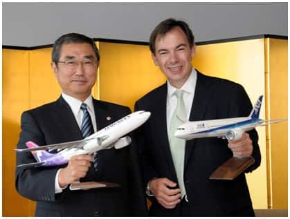 TOKYO/HONOLULU, October 6, 2010 - All Nippon Airways Co., Ltd. and Hawaiian Airlines, Inc. today announced that the two carriers signed an agreement to establish a commercial partnership. Shinichiro Ito, President and CEO of ANA, and Mark Dunkerley, President and CEO of Hawaiian Airlines, met in Tokyo yesterday to sign the Letter of Agreement, and agreed to explore bilateral cooperation in areas such as code-sharing, frequent flyer programs, and cargo subject to necessary government approvals. Both airlines will start discussing the details of cooperation hereafter. As previously announced, ANA will start its service connecting Tokyo’s brand new International terminal of Haneda International Airport and Honolulu from October 31, 2010, while Hawaiian Airlines will launch its first scheduled operations to Japan, between Honolulu and Haneda on November 17, 2010. The cooperation of ANA and Hawaiian will benefit customers of both airlines by providing them with greater choice and flexibility. Shinichiro Ito, ANA’s President and CEO, said, “We are pleased to welcome Hawaiian as a new entrant to Japan market and be able to cooperate. Hawaii is the largest market between Japan and USA by passengers carried, and is an important leisure market for ANA. Our customers will be able to enjoy a wider network among Hawaii islands by this cooperation.” “This new partnership between Hawaiian Airlines and ANA brings together the leading airlines of Hawaii and Japan to offer our customers unprecedented access to both destinations with seamless connections and frequent flyer benefits,” said Mark Dunkerley, Hawaiian’s President and CEO. |