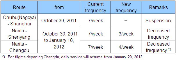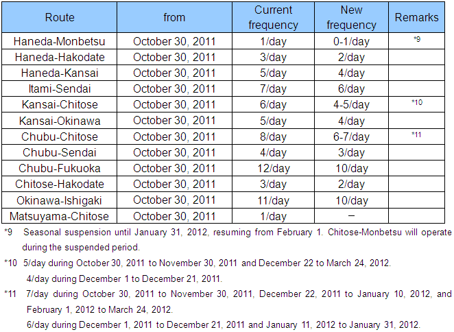 As demand recovers gradually following the Great East Japan Earthquake, ANA will continue working to achieve a good balance between supply and demand by increasing or decreasing flight frequency in accordance with market conditions.