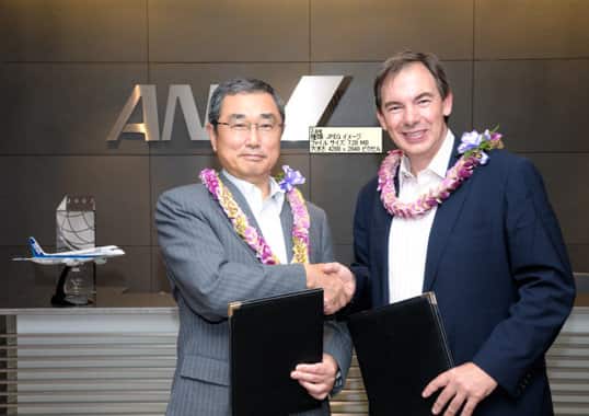TOKYO, January 16, 2012-ANA, Japan’s leading carrier, and Hawaiian Airlines, Hawaii’s leading carrier, today announced the expansion of their marketing and operational partnership with the signing of a code-share agreement for passenger flights within Japan and Hawaii. The agreement was signed between Shinichiro Ito, President and CEO of ANA, and Mark Dunkerley, President and CEO of Hawaiian Airlines.