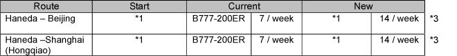 Subject to the resolution of negotiations on an aviation agreement between Japan and China, we are also planning to increase the number of flights on the Haneda Beijing and Narita Shanghai (Hongqiao) routes.
